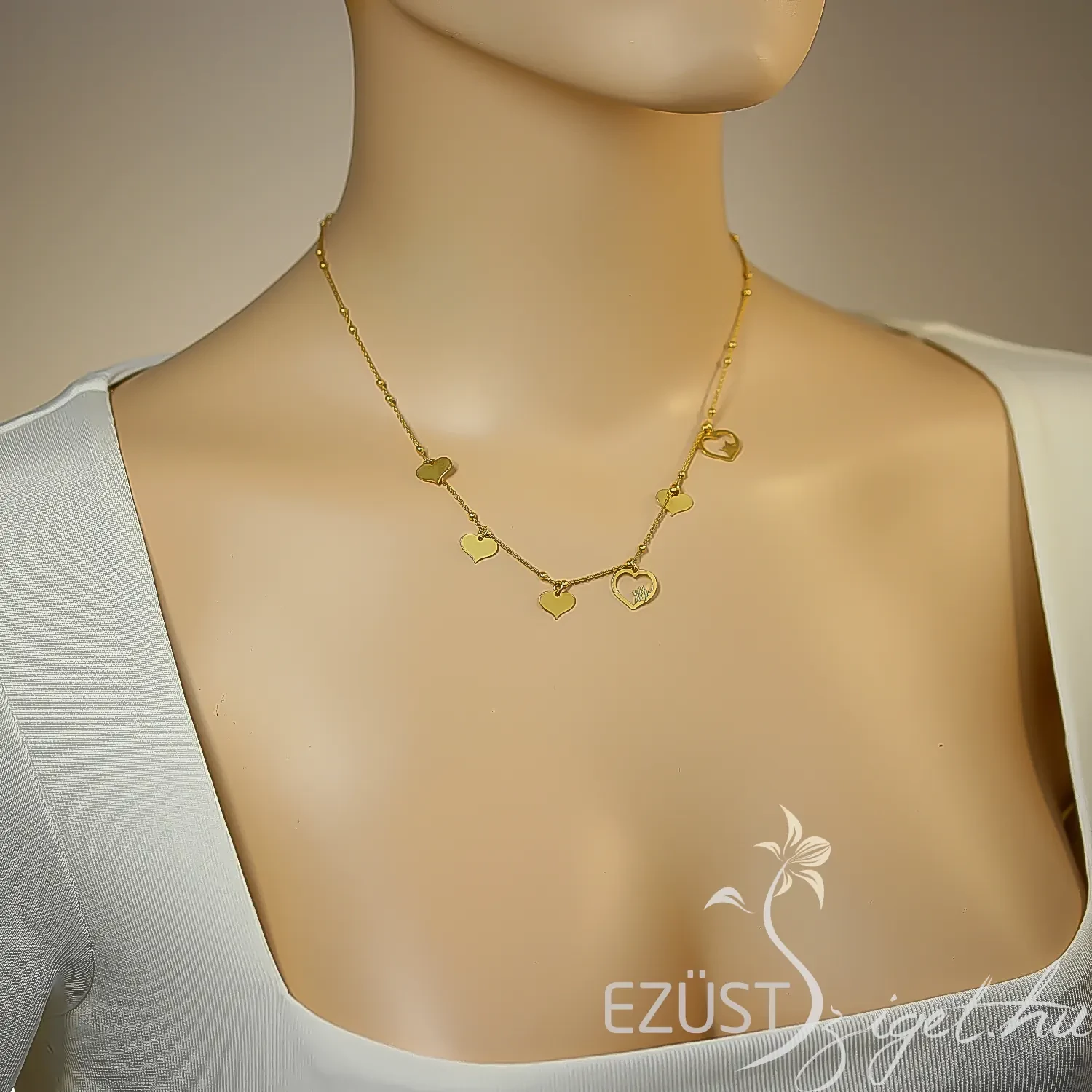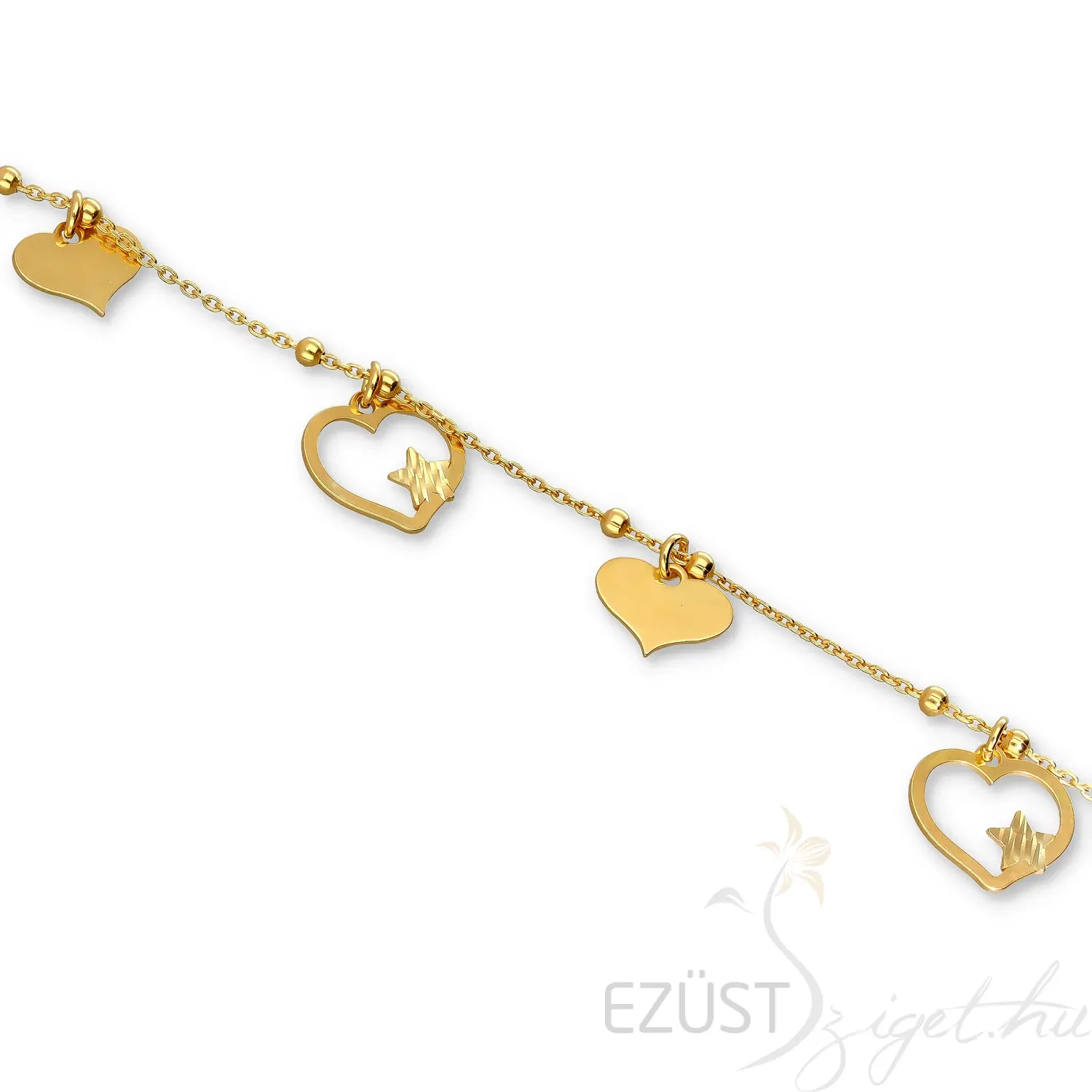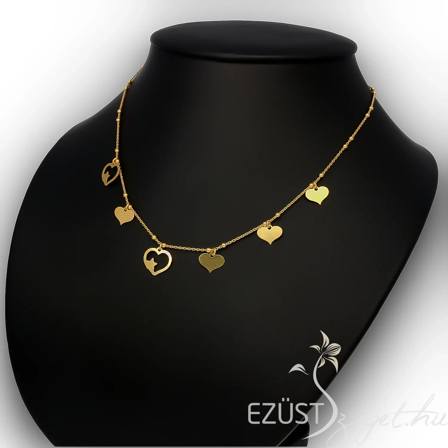 Csillag Szív Aranyozott Ezüst Gyöngyös Nyakék