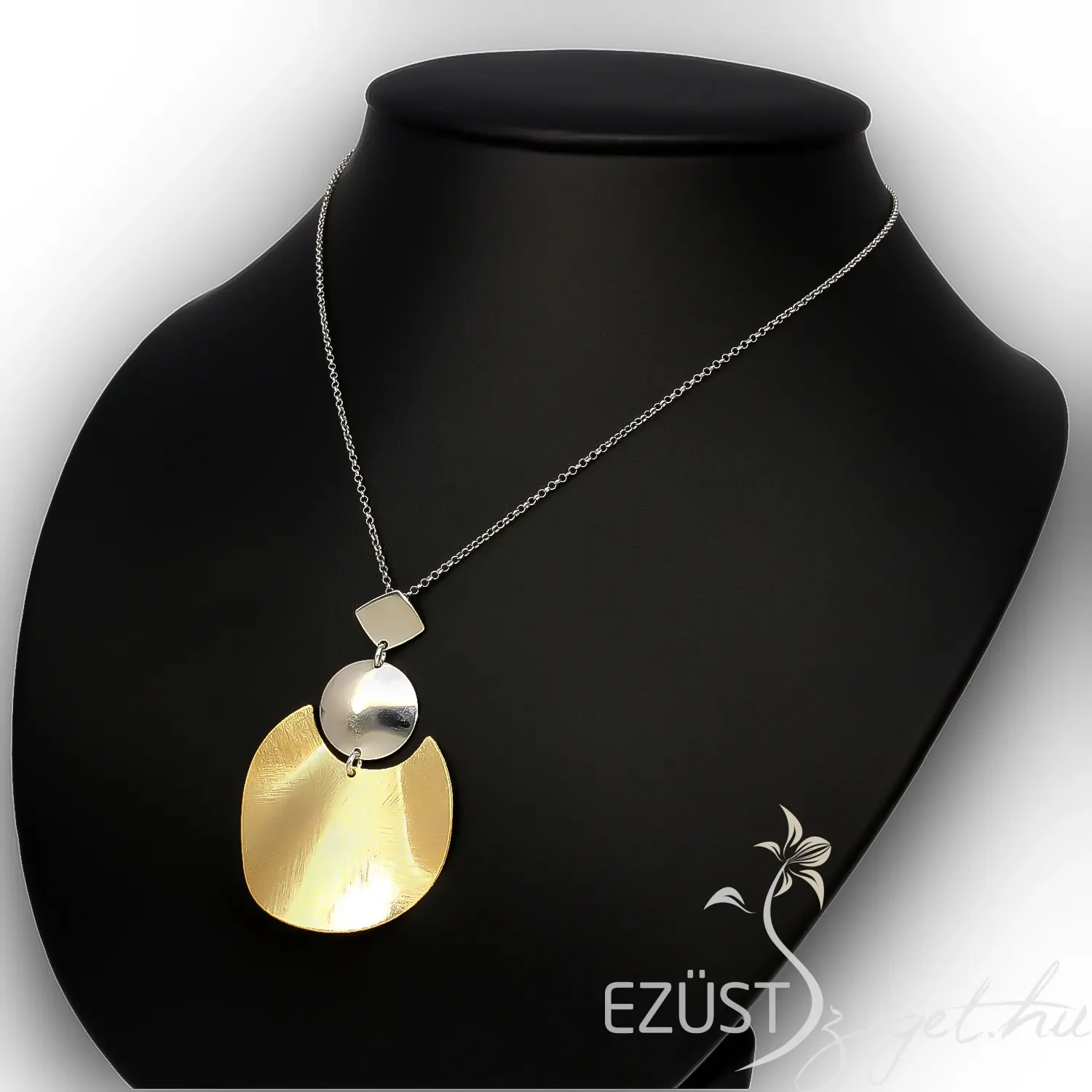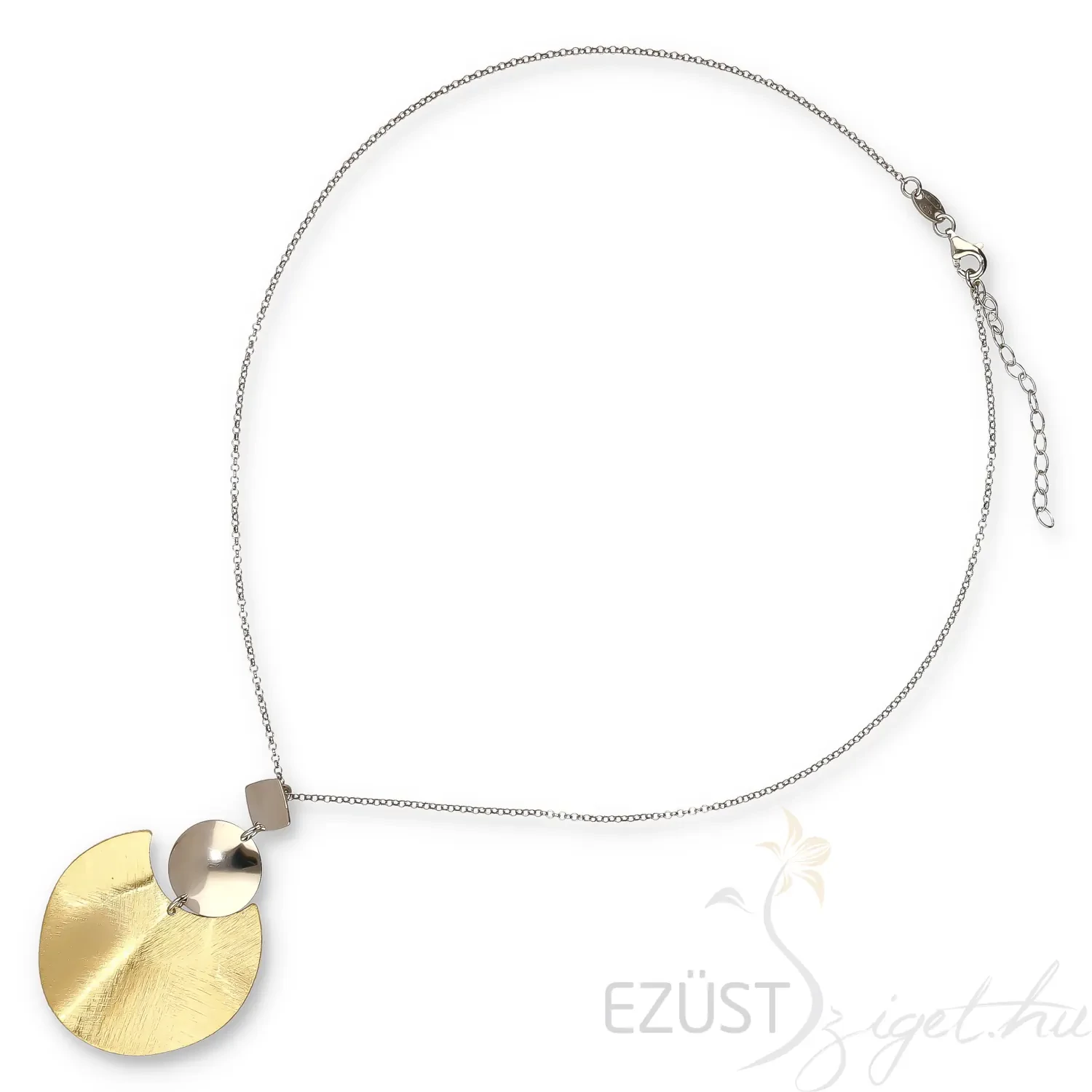 Az egyiptomi istenek ékeire emlékeztető nyakék most elérhető az ezustsziget.hu-n! Különleges kialakítás, aranyozott ezüst elemek, a kör örök divatossága, exkluzív megjelenés - ezekkel a tulajdonságokkal rendelkezik kivételesen szép ékszerünk. Könnyed, ám látványos nyakék, mely segítségével a legcsinosabb résztvevője lehet bármely nő a baráti társaságnak. Az aranyozott rész csiszolásának köszönhetően selyemfényben tündököl.