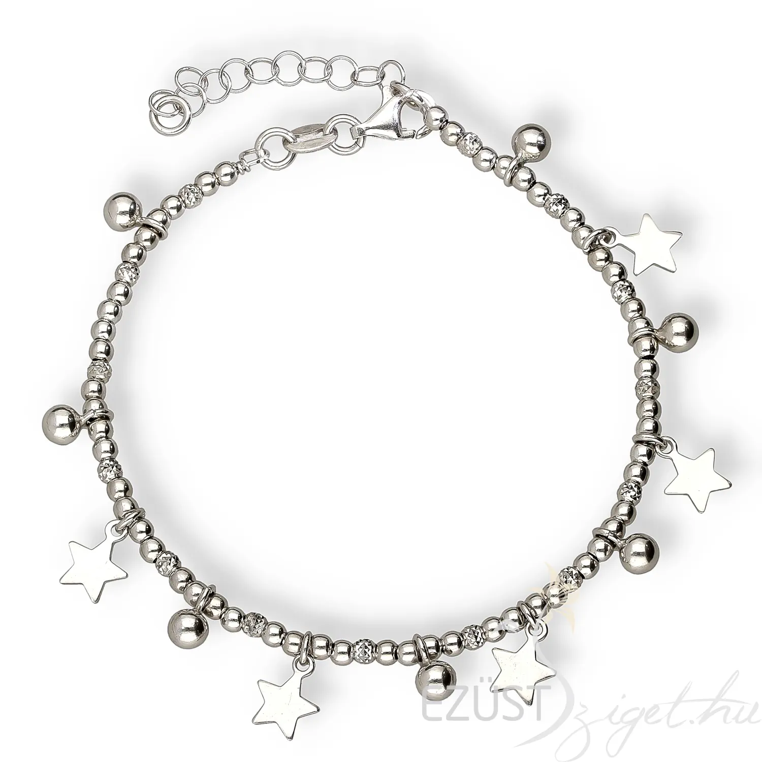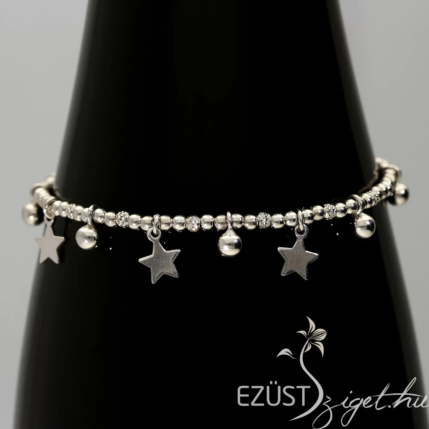 Az ékszer sok kedves apró csillag dísszel ékesített, melyet csiszolt és fénylő ezüst gyöngyök fognak közre. Igazán friss, kedves, üde ékszer. Ajánljuk fiatal hölgyeknek, lányoknak, hétköznapokra és kivételes alkalmakra egyaránt.