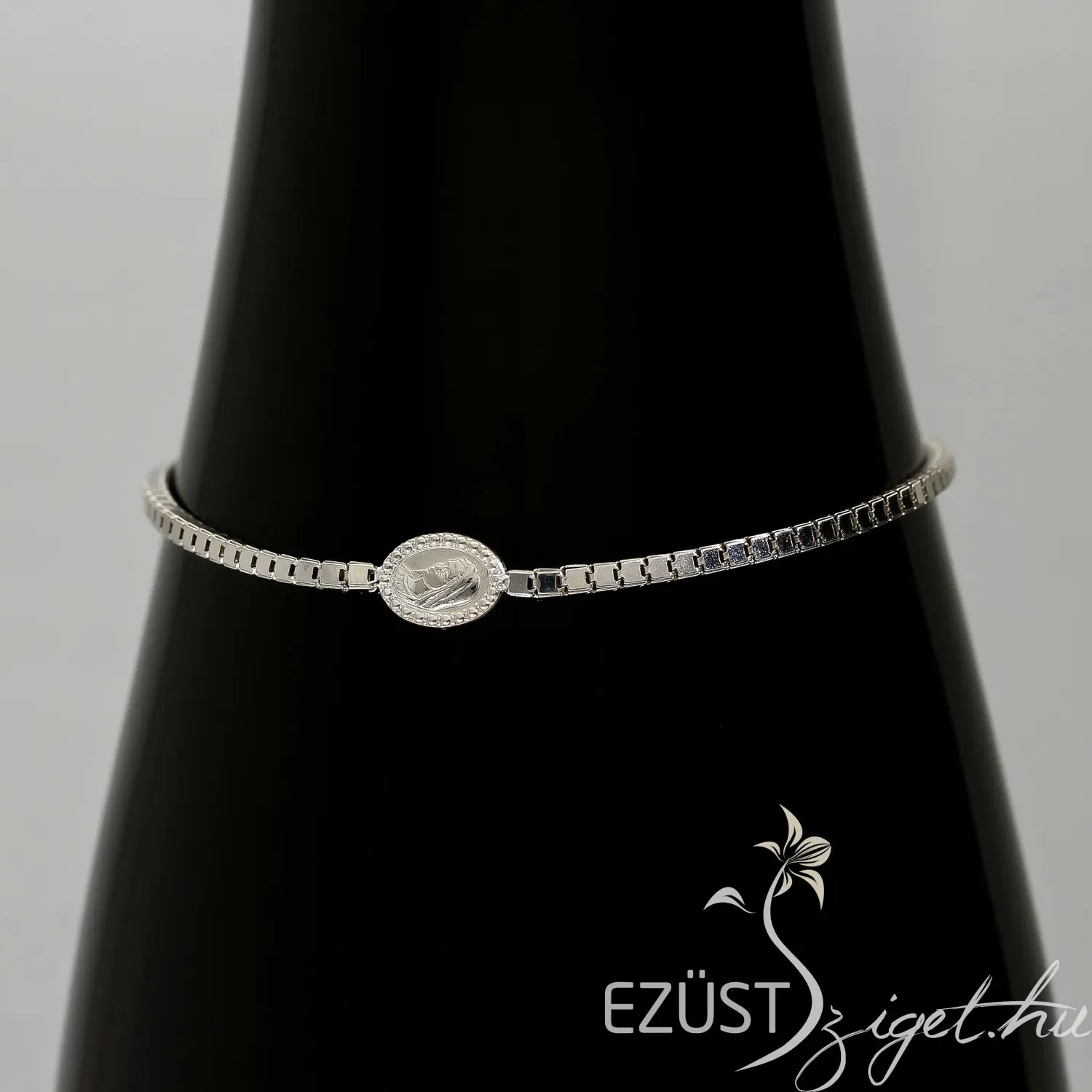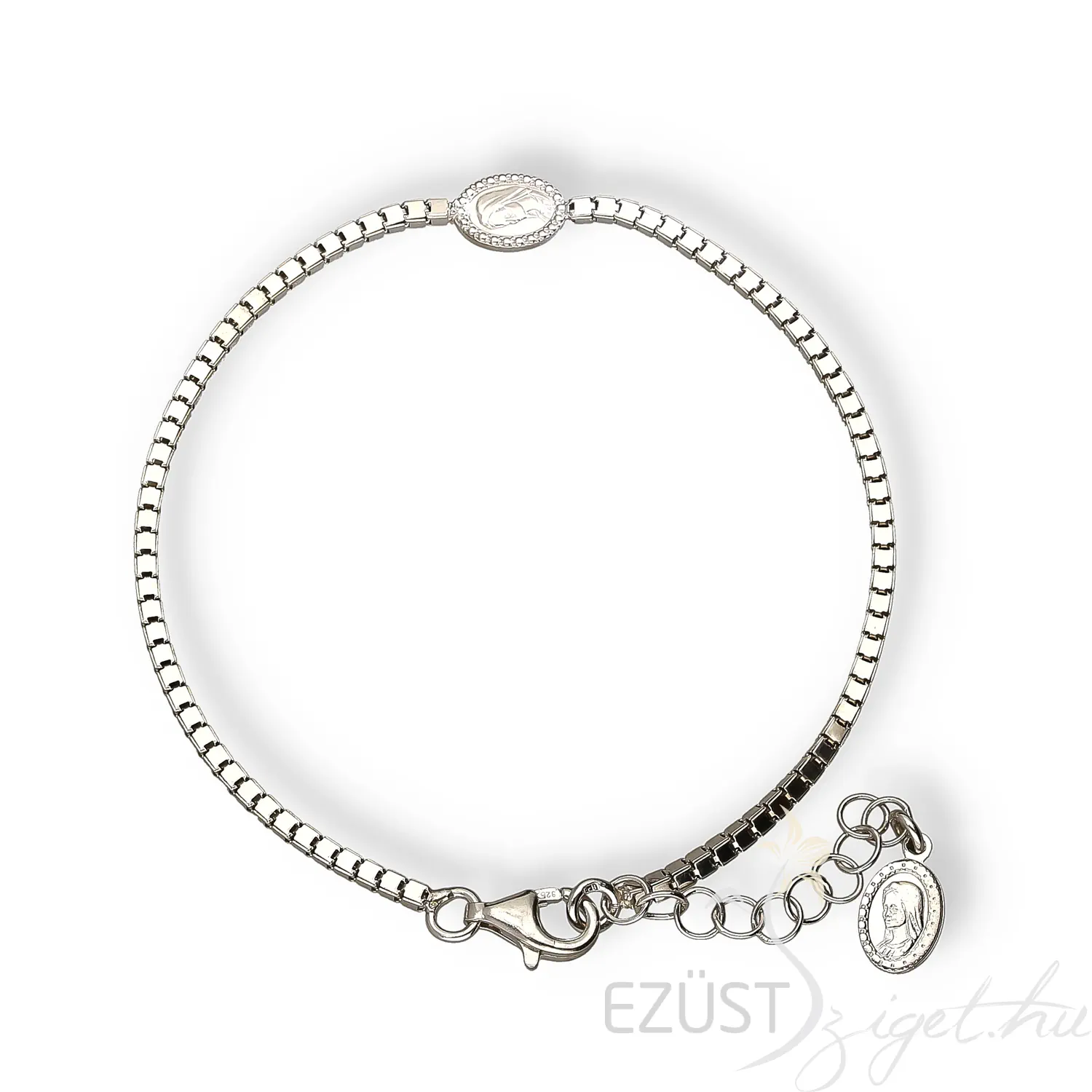 Az állítható toldás lehetőséget ad változtatni a karlánc hosszát. Ez pedig még több lehetőséggel ruházza fel az általunk kínált ékszert és ezáltal jövendőbeli tulajdonosát is. A toldás végén még egy medál található, mely szintén a Szűzanyát ábrázolja, azonos a központi medállal.