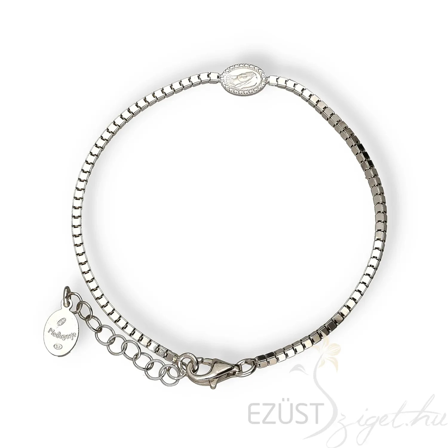 Ezen a karláncon középen látható medál Szűz Máriát ábrázolja, egy úgynevezett Medjugorje medál. A medjugorje jelentése hegyköz, földrajzilag Bosznia-Hercegovinában található, népszerű zarándokhely a keresztények számára.